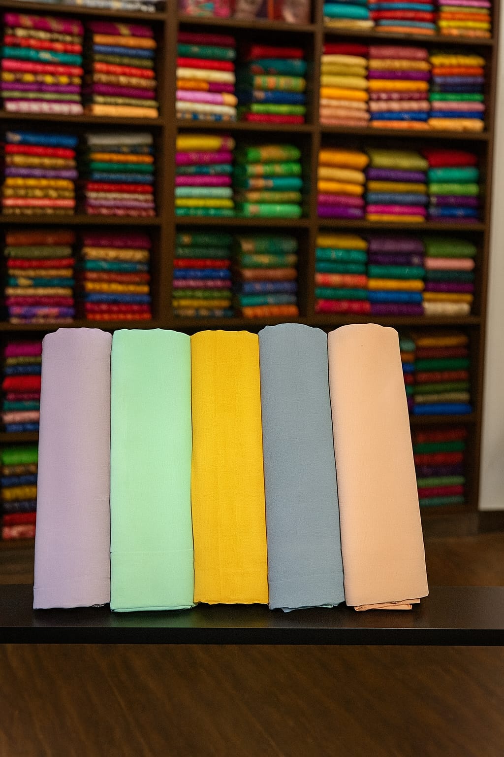 Each set features five beautifully coordinated pastel shades, ideal for pairing with casual outfits, formal wear, or festive ensembles. The smooth texture and graceful fall of chiffon add a refined 160+ color available and luxurious touch to your style.